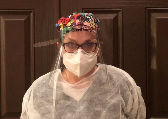In less than two weeks, a team of nurses, engineers, other healthcare professionals and researchers at the University of Massachusetts Amherst designed a low-cost protective face shield that can be mass produced to provide protection to frontline health workers. Together with nurse inventor Rachel Walker, PhD, RN, Ellen played a valuable role by providing her nurse insights into the final design. Ellen, who has over 35 years of nursing experience that includes Ebola, SARS and emergency care, recently paused her PhD program to join the frontlines as an isolation tents nurse manager for communities hit with COVID-19.